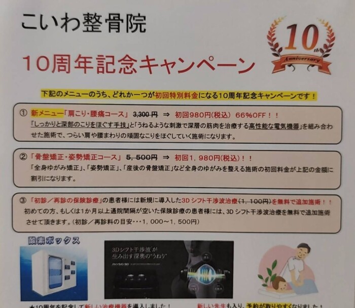 こいわ整骨院10周年キャンペーン!!