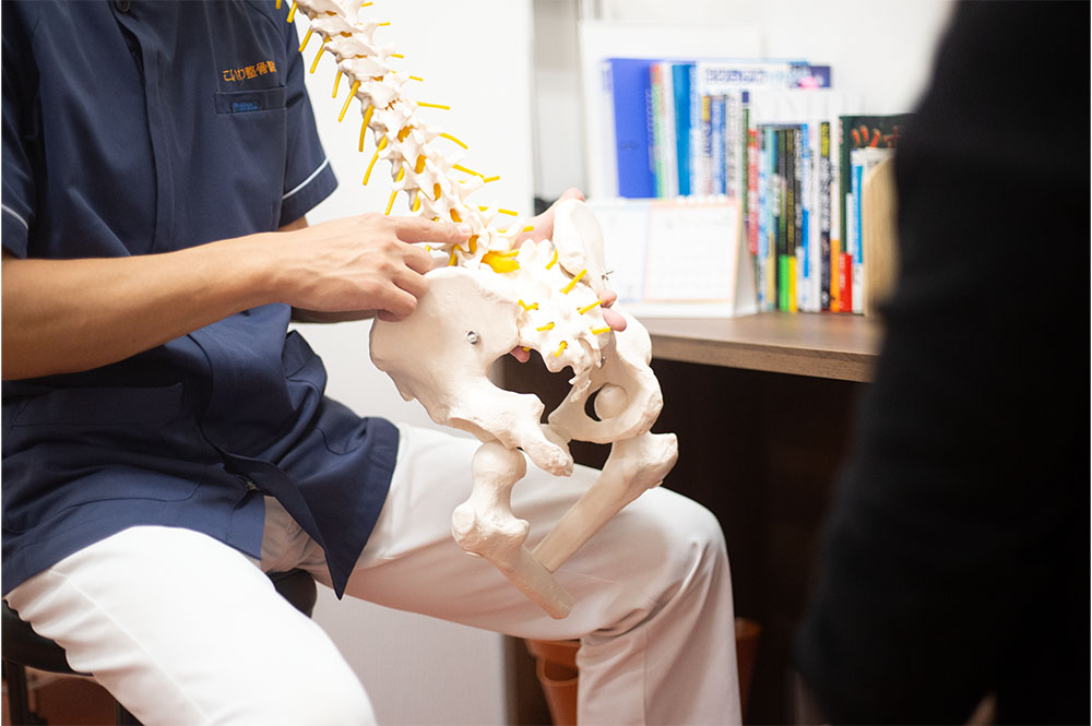 最初の問診や検査のときから、立ち方・座り方・歩き方、仕事や家事のときの姿勢まで丁寧にうかがい、からだ全体のバランスを一緒に確認したうえで施術していきます。