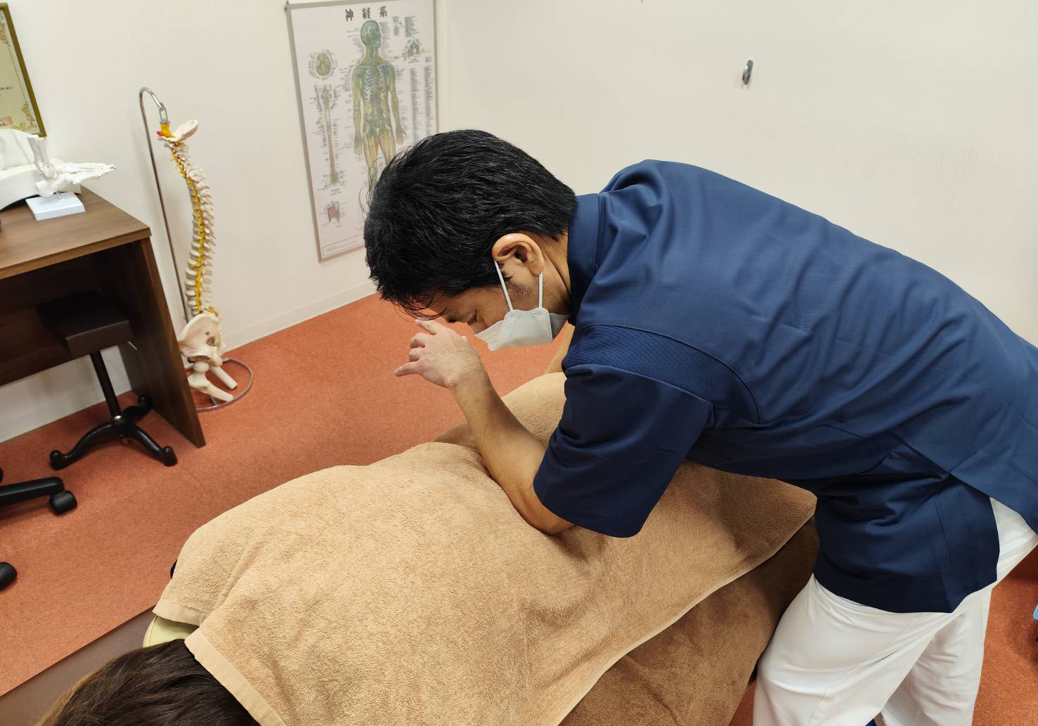 ゴリゴリとした状態にまで固まった筋肉のかたまりを見つけ出し、その部分を集中的にほぐしていく治療です。